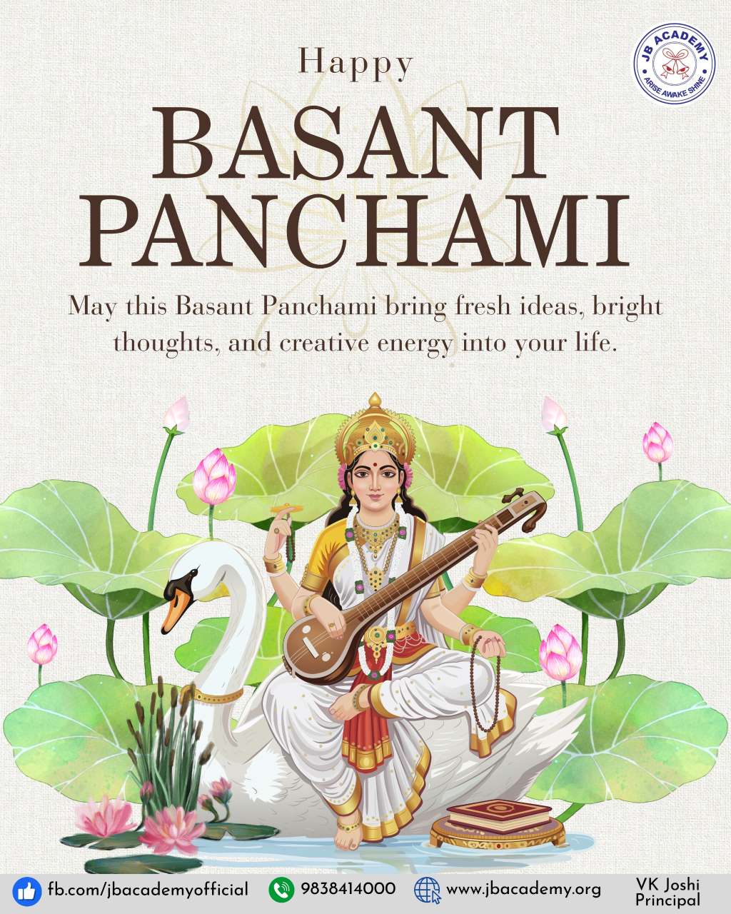 Warm wishes from JB Academy on the auspicious occasion of Basant Panchami. 🌼 May the blessings of Goddess Saraswati fill our lives with knowledge, wisdom, creativity, and positivity. May this season of spring bring new beginnings, growth, and joy to all.