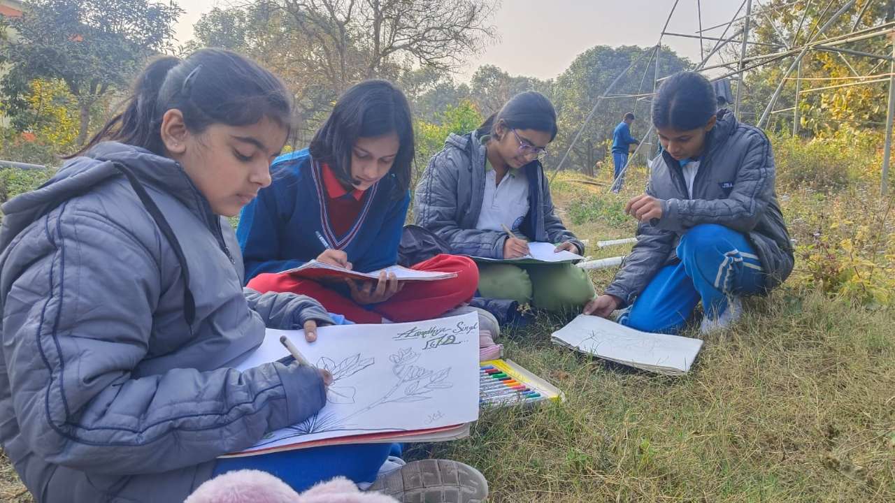 Eco Club students of JB Academy visited Shaheed Udyan, Ayodhya for making live sketches of ethnic trees. Under the guidance of Ms. Vandana Sadwani, Dr. Sunaina Lal, and Ms. Deeksha Ma’am, students showcased their painting skills. They learned about the cultural, social, spiritual, and medicinal importance of ethnic trees. The visit helped students connect nature with tradition and heritage in a meaningful way.