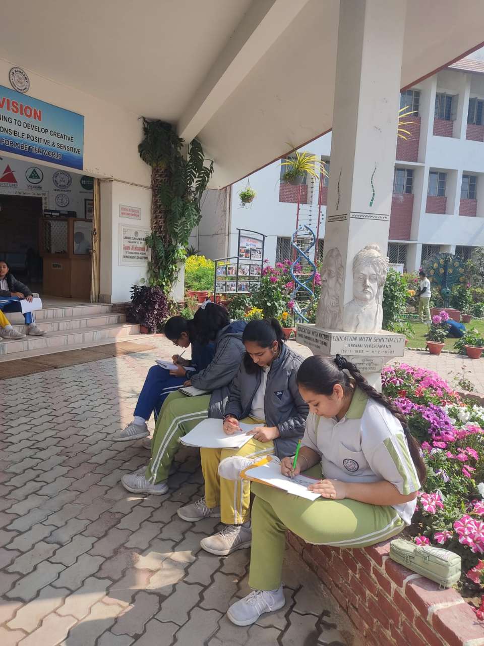 During the art period, students of Class VII A enjoyed an outdoor flower study, observing and sketching beautiful flowers. The activity enhanced their creativity and appreciation for nature.