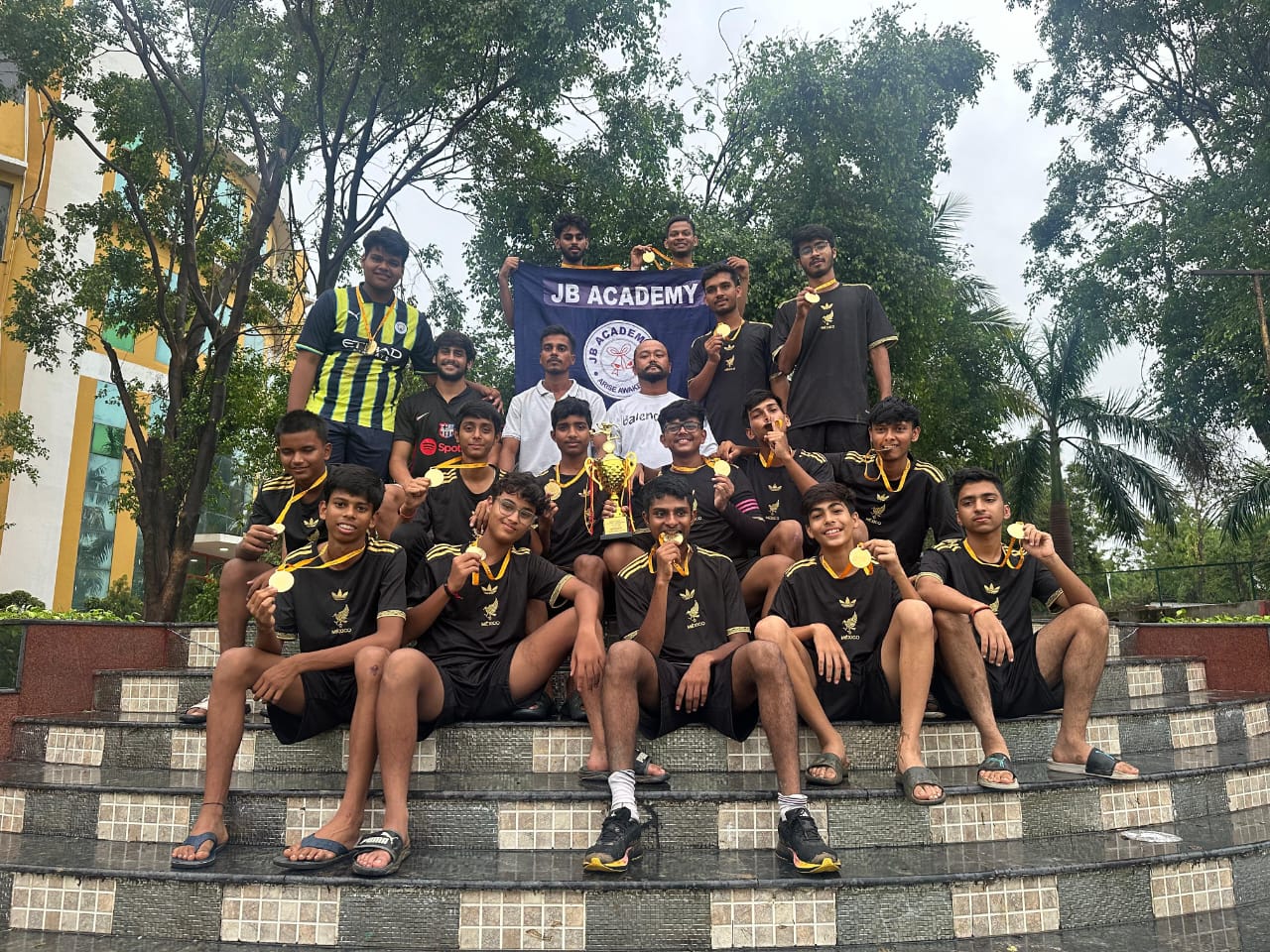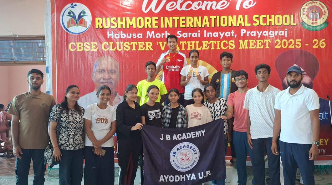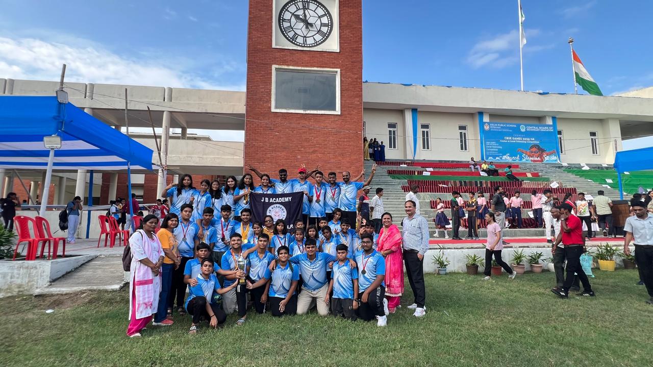 JB Academy’s U-19 Football Team emerged as champions at the CBSE Cluster Tournament held at DPS Prayagraj, outperforming 76 schools in a knockout format. The team secured victories against Hallmark School (3–0), Sunbeam Balia (penalty shootout), Seth M.R. Jaipuria Varanasi, and Sunbeam Sanctity Varanasi. Their disciplined play, resilience, and teamwork led to this remarkable achievement.