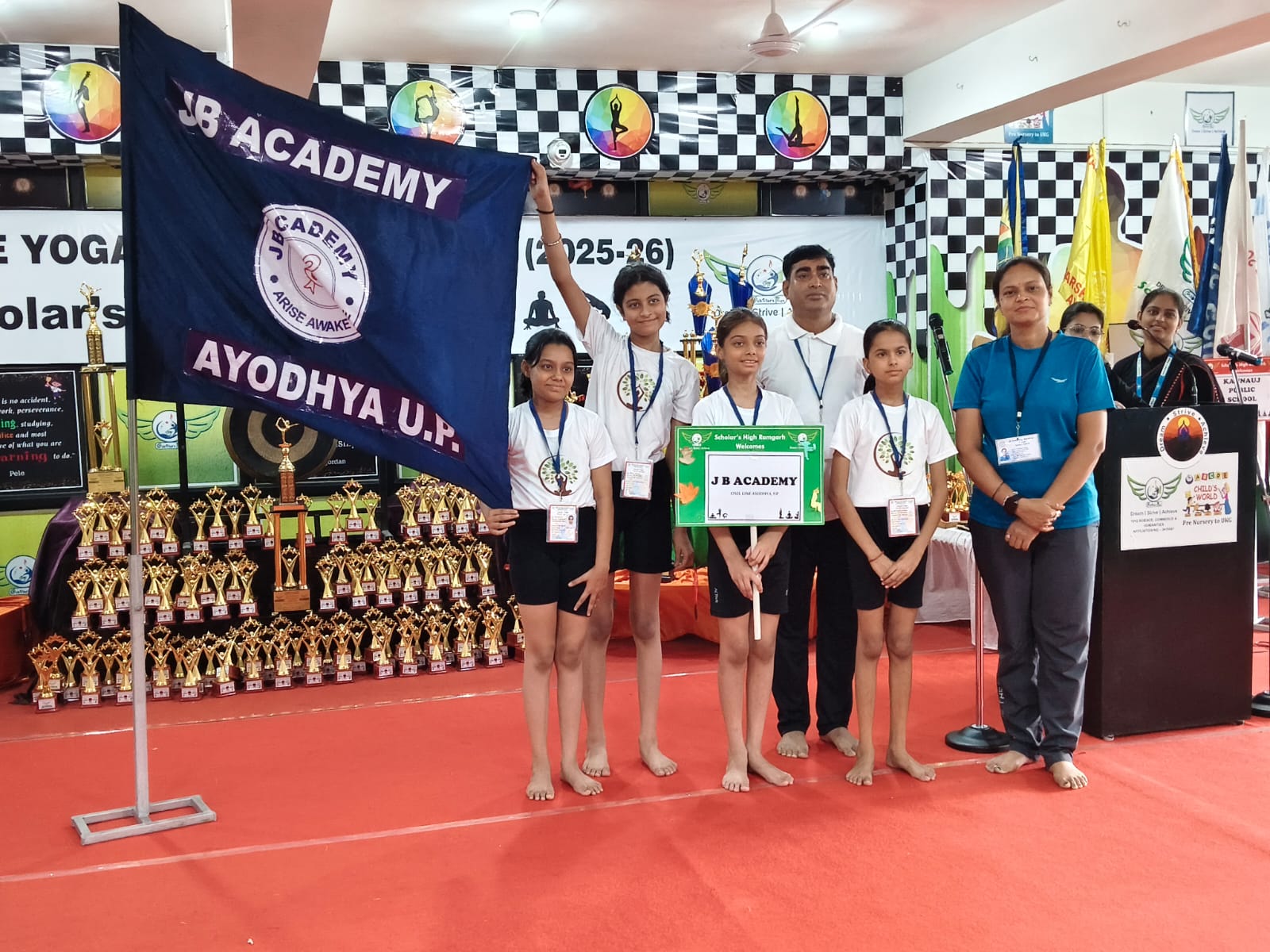 CBSE Yogasana Championship 2025 JB Academy participated in all categories at the championship held in Ramgarh. Despite tough competition, our students secured ranks under 10 and received trophies 🏆.